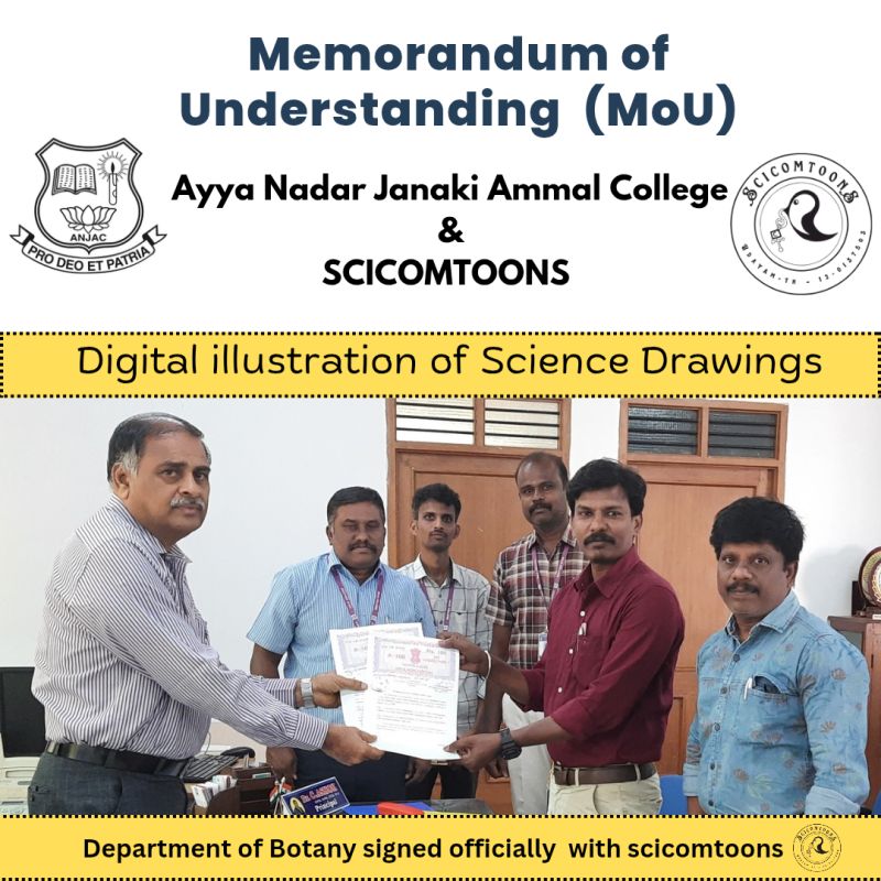 Memorandum of Understanding (MoU) has been officially signed between Ayyanadar Janaki Ammal College, Department of Botany and SciCom Toons !By Kannan Kanthaiah / July 21, 2025